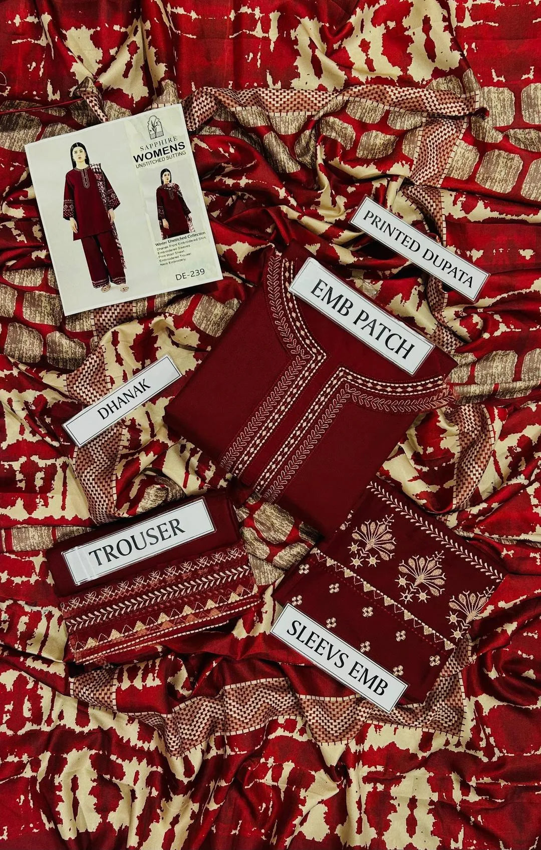 • Package Includes: 1 x Trouser, 1 x Dupatta, 1 x Shirt