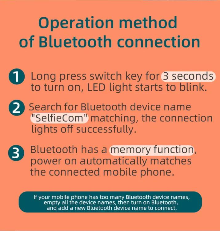 - 3: The remote control has a memory function, which automatically matches the connected mobile phone when it is turned on.